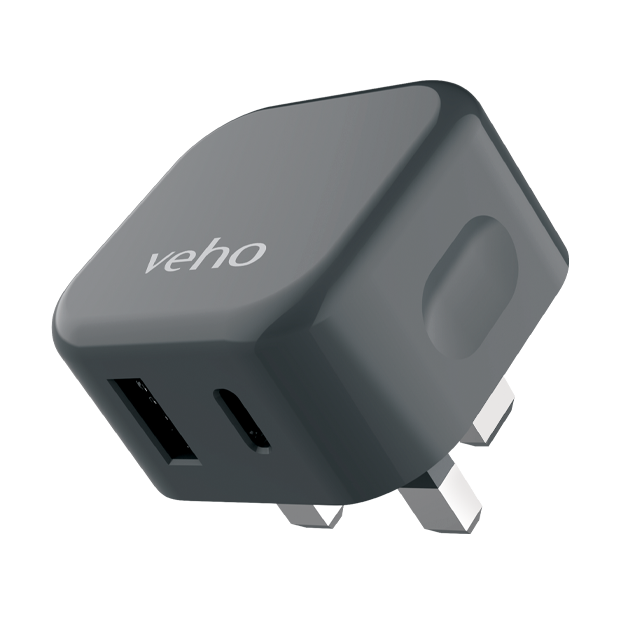 The 20W dual-port USB wall charger is ultra-compact, lightweight and ready for fast charging your devices at home or on the go. The dual ports offer up to 20W, using the USB-C PD port, or up to 18W via the USB 3.0 port. Intelligent chipset to protect from overcharging, overheating and short circuit protection.