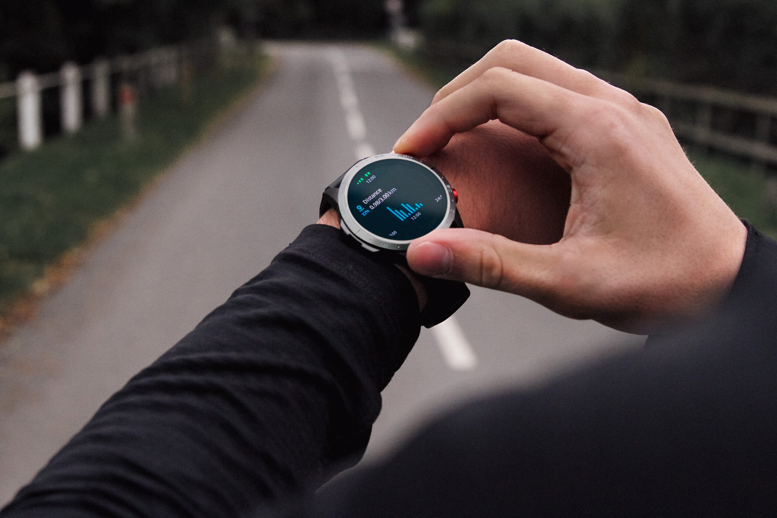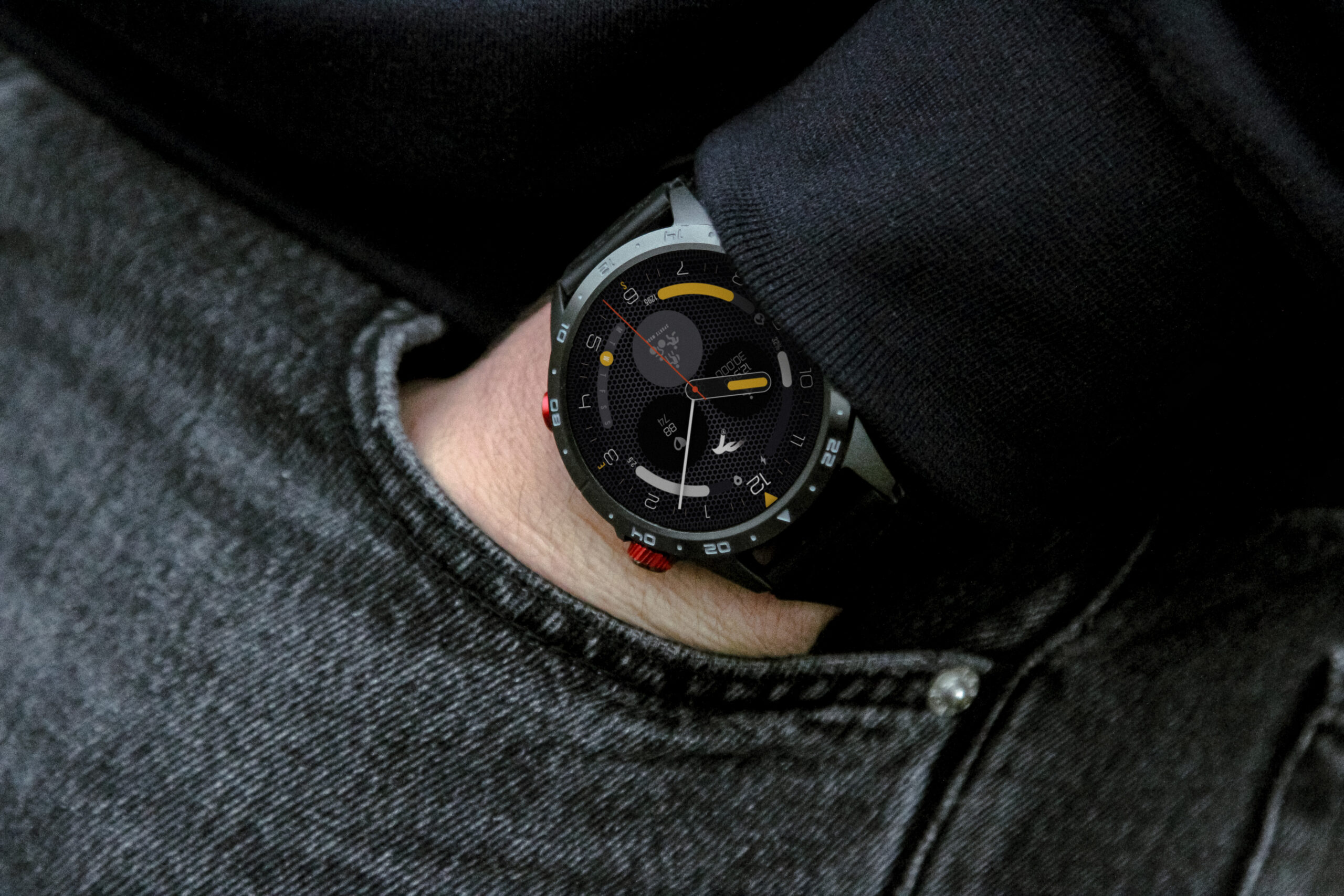A large 1.43” full-colour AMOLED (Active Matrix Organic Light Emitting Diodes) touchscreen with a resolution of 466 x 466 pixels.