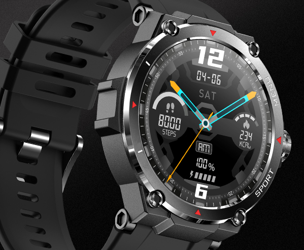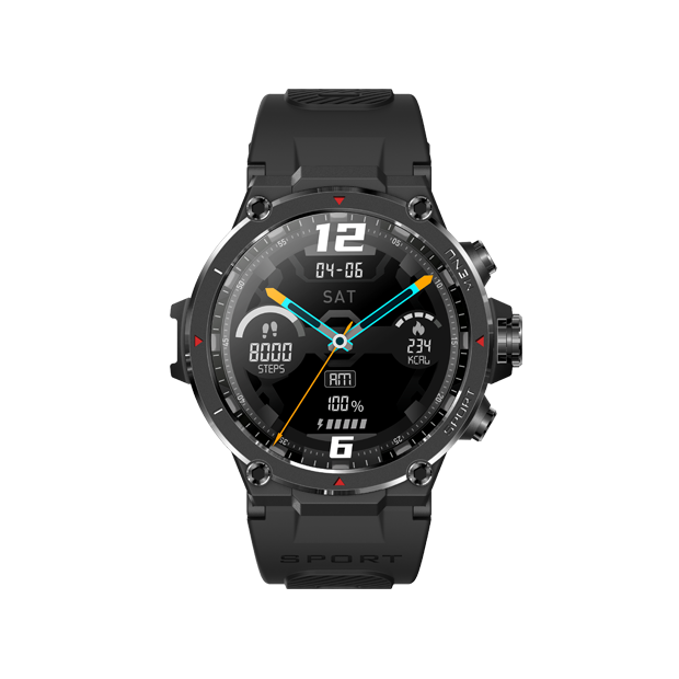 The Veho Kuzo F1-S is a rugged and durable smartwatch designed for adventure, sports, and the outdoors, with AMOLED touchscreen and built-in GPS. The Kuzo F1-S smartwatch is a sleek and stylish timepiece packed with impressive features. Its 1.3-inch AMOLED display offers vibrant colours, while its lightweight rugged design ensures comfortable wear in any environment. With comprehensive health tracking capabilities, including heart rate monitoring, blood oxygen levels and sleep analysis, the F1-S helps you make informed lifestyle choices. Stay connected with smart notifications for calls, messages, and social media alerts. The watch’s intuitive interface allows you to control music playback and manage alerts. With an IP68 water and dust resistance rating, it’s perfect for workouts and outdoor adventures. Personalise your style with customisable watch faces and universal strap mount. The Kuzo F1-S is the ultimate blend of fashion and functionality; stay connected, stay active, and stay stylish.