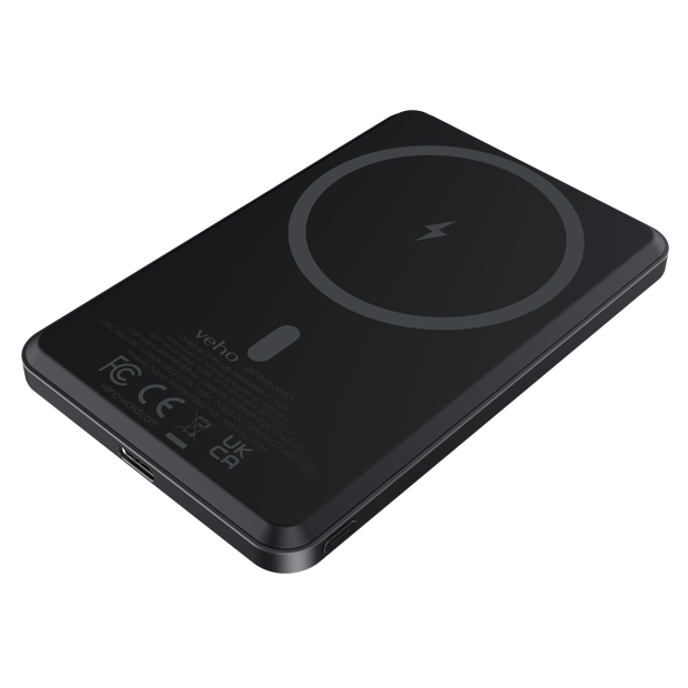 The Veho Pebble MG-5 MagSafe power bank is a high performance MagSafe power bank. Allowing you to stay powered up on the go with the Veho MG-5 MagSafe power bank, it is sleek, lightweight charging solution designed for MagSafe-compatible devices, features a slim grey finish that complements any style, the MG-5 snaps magnetically to the back of your phone, offering a secure fit and seamless wireless charging.